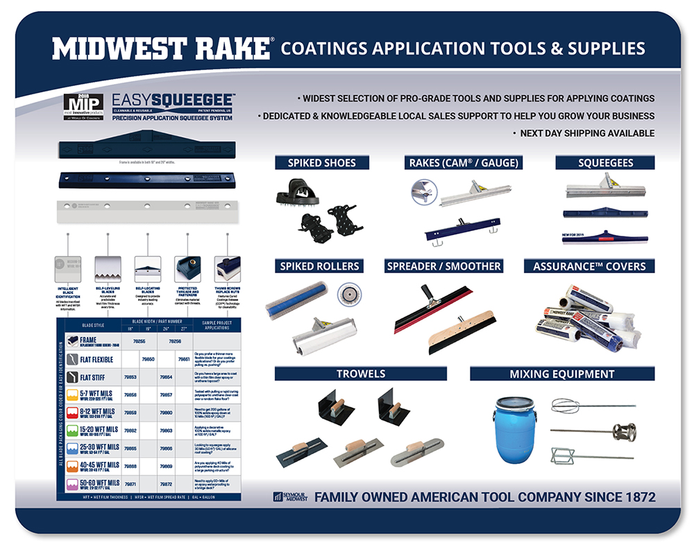 The best way to incrementally grow your business with Seymour Midwest® – add the Midwest Rake® specialty coatings tools that are trusted by coatings experts and concrete decor artisans worldwide.